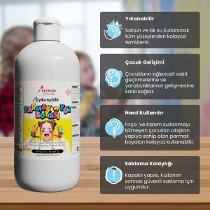 - Uygulama Kolaylığı: Akışkan bir yapıya sahip olan parmak boyası, farklı yüzeylere kolayca uygulanabilmelidir. Bu, çocuğun zorlanmadan resim yapmasına yardımcı olur.